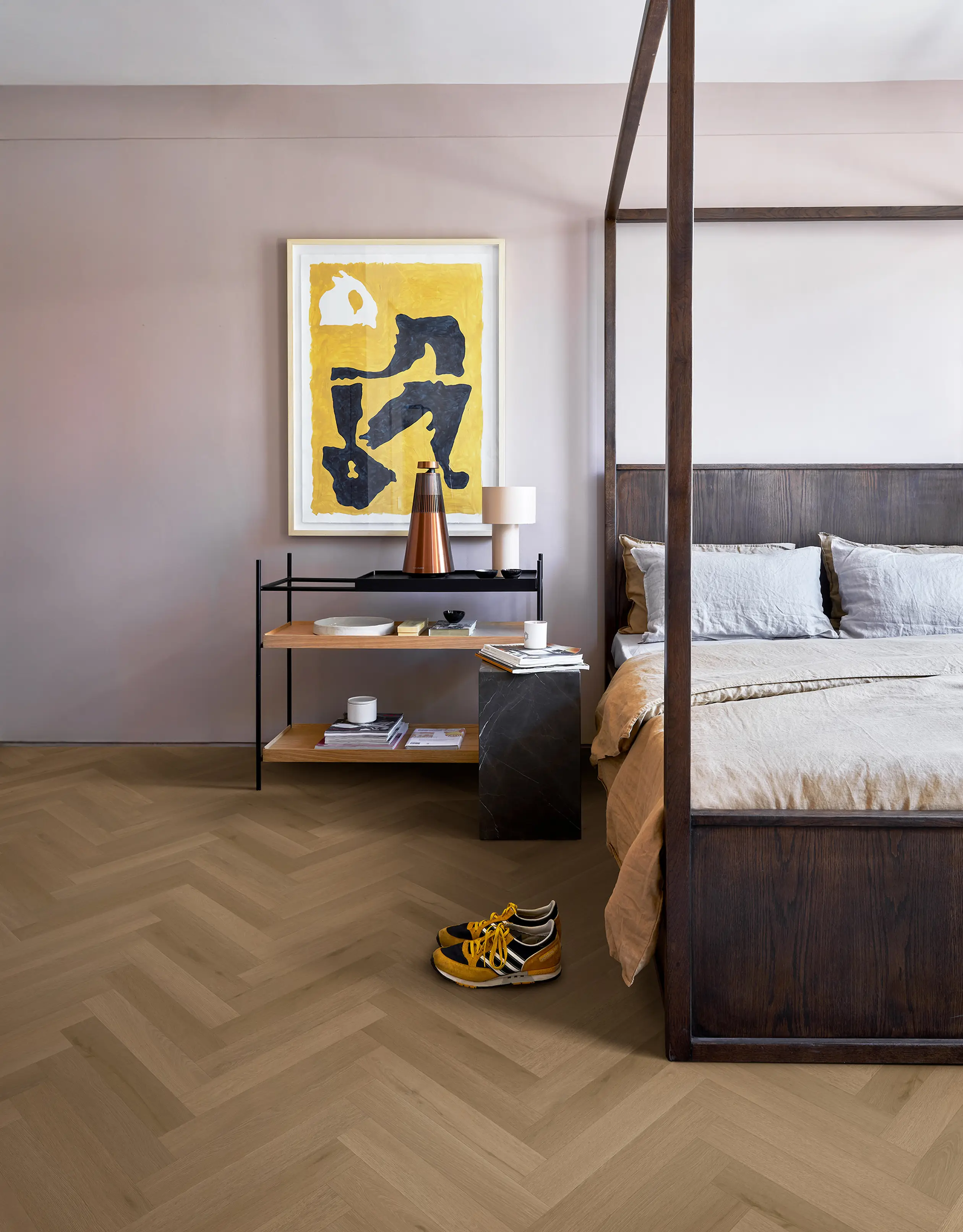 Kährs' latest innovation in luxury tiles, designed to captivate the senses. Available in three formats—king-size plank, herringbone, and chevron—each crafted in five exquisite shades with a naturally oiled, super-matt finish.