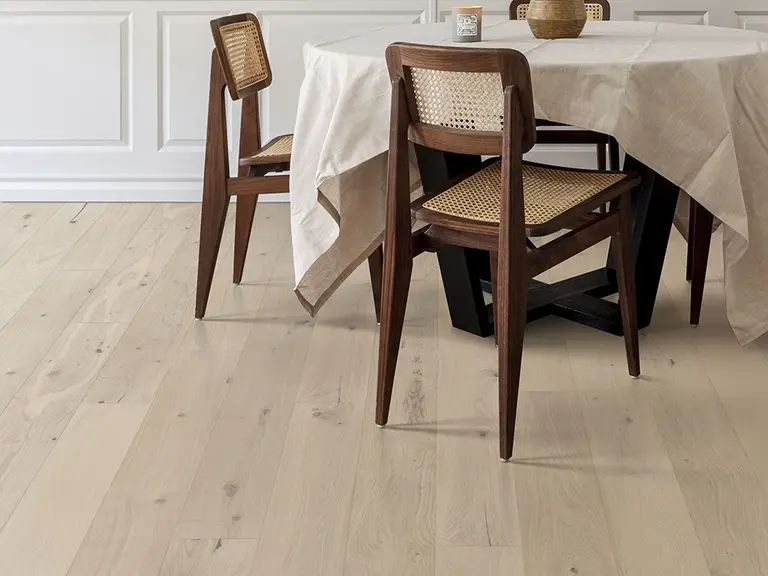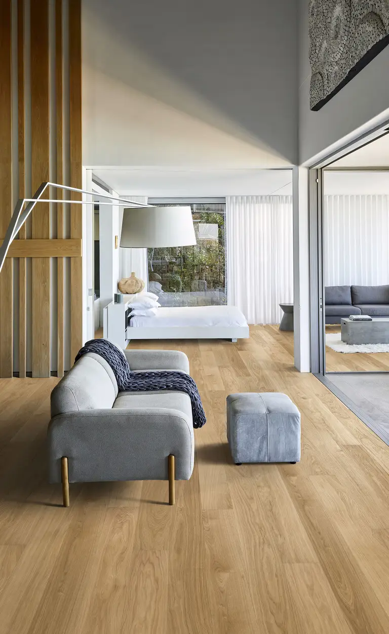 A sustainable 3-layered veneer flooring which combines the natural touch of wood with sustainability. While still utilizing the renewable oak material in a resource-efficient manner, Kährs Life continues to be an affordable and sustainable option for those wanting a real wood plank floor.