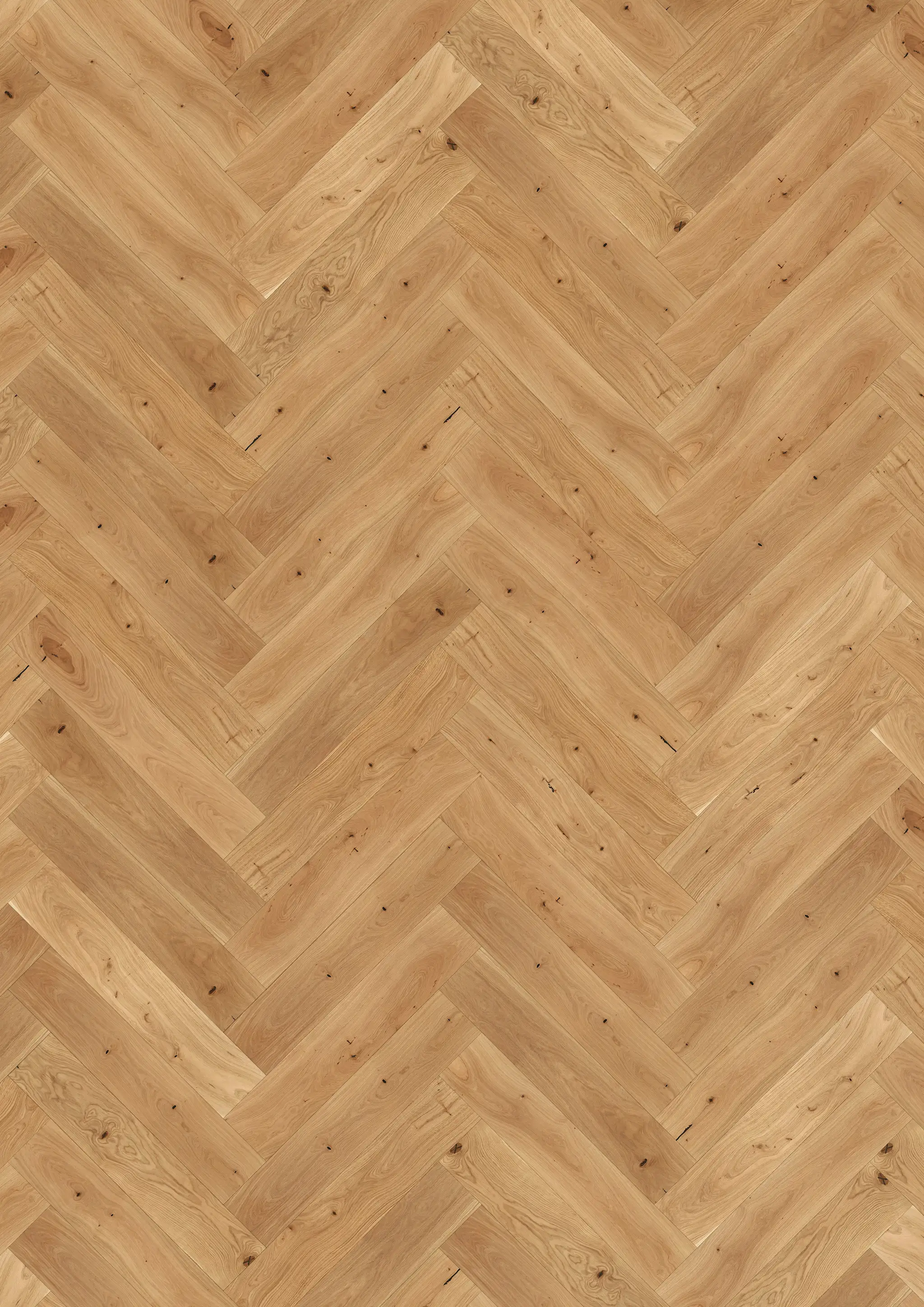 Oak Herringbone CD is a premium 2-layer parquet crafted from European oak, featuring colour variations and knots. Each bundle includes both left and right hand boards for a glue-down herringbone installation. The generous dimension is highlighted by four-sided micro-bevelling, while the brushed and oiled finish enhances the wood’s natural grain and texture.