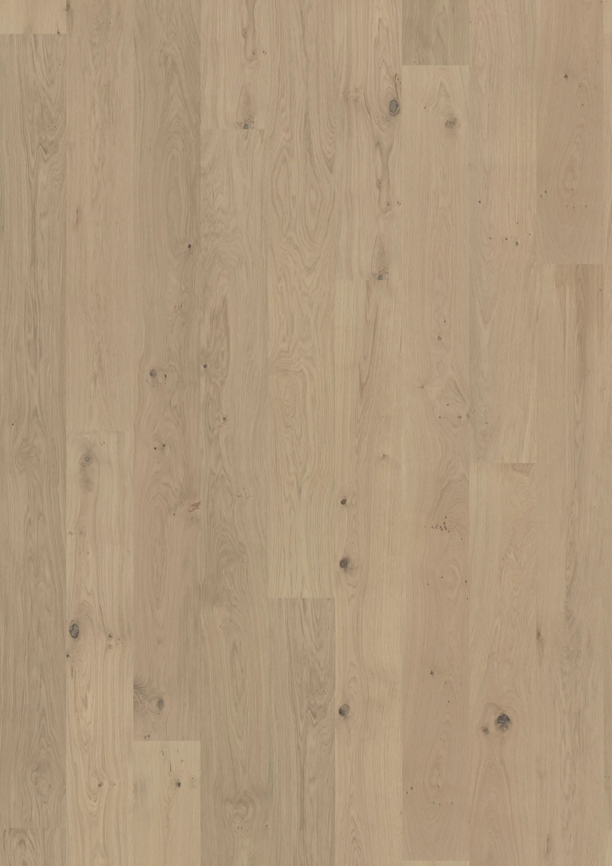 Oak Brighton (white pigmented, matt lacquer finish) is an exclusive 1-strip floor (board). This means that the visible part of each board (wearing surface) is taken from one piece of wood. Nature's own design with knots and a lively structure.