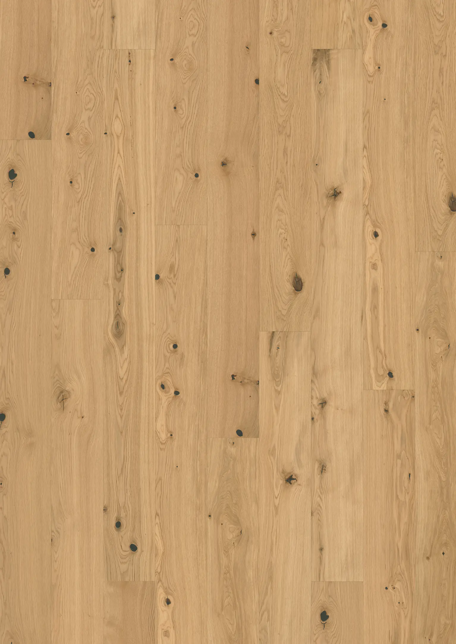 Inspired by the color of dried fennel-seeds Oak Fennel ranges from faint tan to a light golden beige brown, contrasting with the darker knots and grain creating a natural, rustic design. The brushing, in combination with the oiled surface of each plank highlights the natural texture of this floor for a natural appeal.